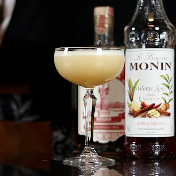 This variation of the classic Whiskey Sour is a Christmas twist where the sweetness of Monin Winter Spice syrup is perfectly blended with bourbon, freshly pressed lemon juice and egg white to create a delicious cocktail for cozy serves during cold winter nights.